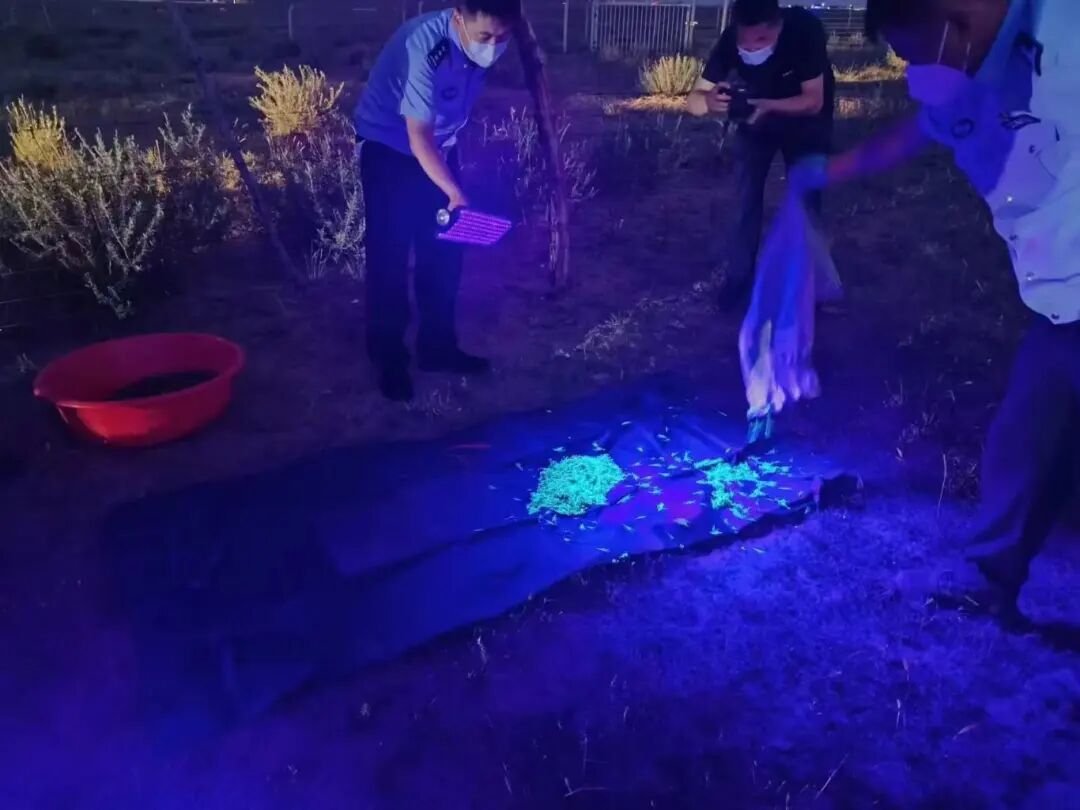 暮色笼罩下的杭锦旗草原,紫光灯束频繁闪烁,一些不法分子利用特殊光源非法捕捉野生蝎子,并通过秘密渠道高价出售,形成跨区域“猎捕、收购、运输、贩卖”的黑色产业链,对草原生态系统造成严重破坏。