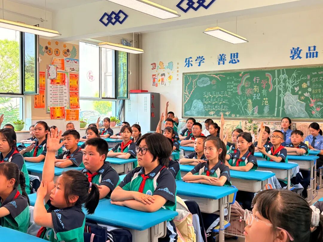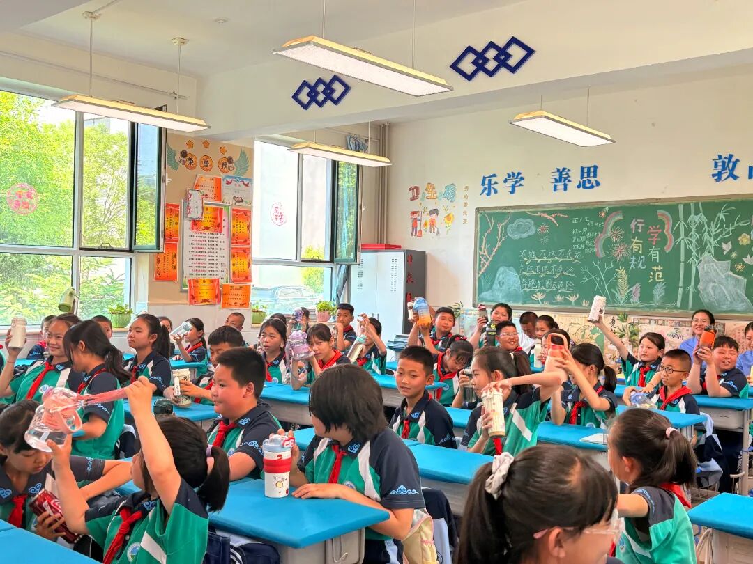 “美丽中国,不是口号,是行动”主讲人提出具体的行动倡议,要珍惜每一滴水、每一度电;要减少垃圾产生,做好垃圾分类,主讲人引导同学们做到拒绝“一次性”用品,外出时自带水杯,课堂氛围逐步达到高潮,同学们纷纷自觉举起自己携带的水杯,用行动响亮的回答:我们可以做到!这一集体展示,生动体现了孩子们心中萌发的环保意识和保护环境的坚定决心。