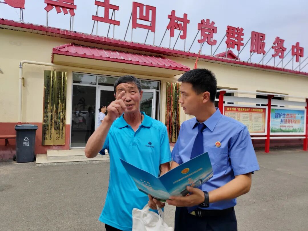 今天一大早,黑土凹村的村民群众就纷纷赶来围坐在村委会前的小广场,认真聆听检察官和法官的释法说理。检察官选取一些具有典型代表意义的非法占用农用地、草地、林地等相关案例,通过一个个真实的小故事,把晦涩难懂的法律条文转化为村民听得懂的“家常话”,给村民们送上一场关乎饭碗与家园的“土地公开课”,打通耕地保护宣传“最后一公里”。 活动现场,普法团队还发放了非法占用林地、草地、农用地普法宣传册,图文并茂地展示非占和毁林毁草等违法行为引发的社会后果和法律后果。引导倡议村民们增强严格保护耕地、依法依规用地、节约集约用地意识,全民参与,凝聚共识,共同守护好我们的“饭碗田”,让每寸土地都成为丰收的良田和滋养人民幸福生活的沃土。 村民感慨:“以前总觉得自家地想咋用就咋用,今天才知道改变土地用途后果如此严重!”。在聆听普法的过程中,一个老实巴交的村民听到老乡们纷纷提出自己的问题,他也鼓起勇气,问出了他心中的疑惑:“检察官,就像我家旁边那块荒地空了好多年,闲着也是闲着,我能自己开垦种点菜吗?”