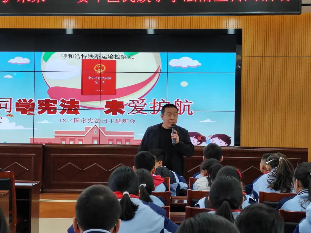 2025年12月4日是第十二个国家宪法日。为广泛宣传宪法知识,弘扬宪法精神,12月3日,呼和铁检院的检察官们走进赛罕区民族小学以“宪学现用 检护未来”为题,与师生们共赴一场“宪法之约”,掌握《宪法》,让有“宪”人生,充满无限守护。