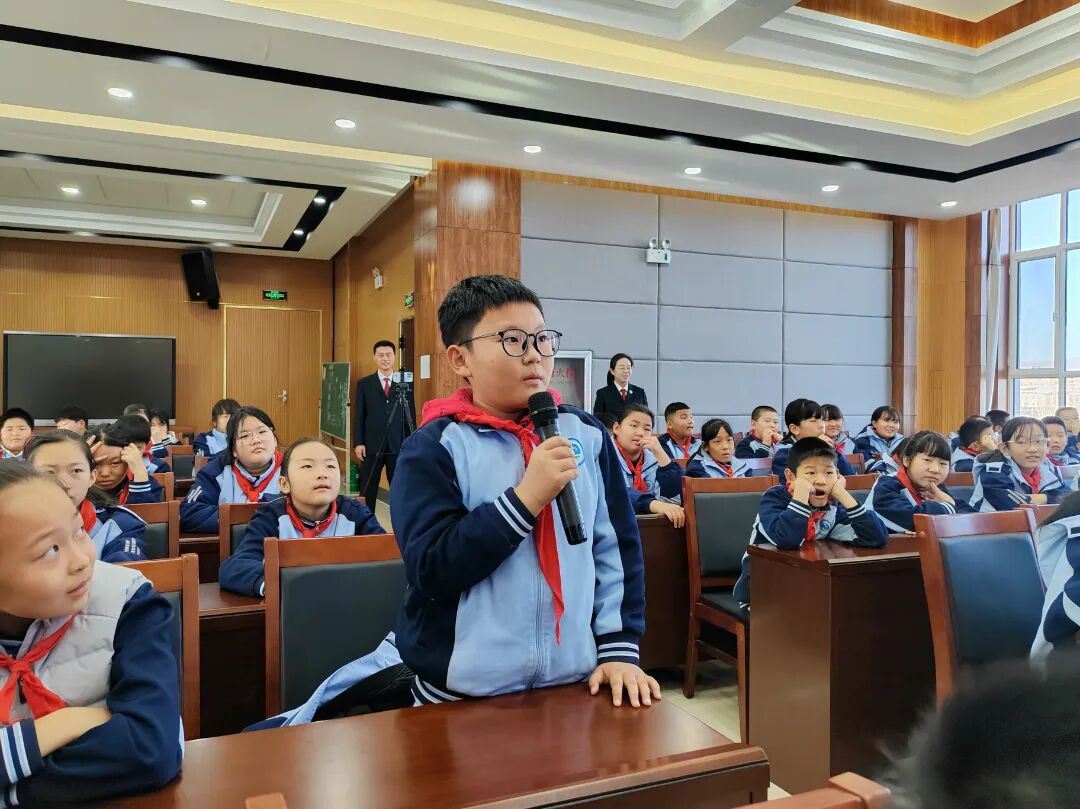 课堂上,检察官结合学生年龄阶段和认知特点,从法律年龄入手,讲述了宪法和法律规定了0-18岁公民哪些权利和义务。他串联一些同学们能接受理解的事案例,并进行课堂互动,展开“沉浸式”教育,充分调动了学生们积极性,激发同学们的法律兴趣和学习热情。引导同学们“宪”学现用,展开“现场断案”,通过一个个反面案例,引导同学们培育正确的人生观、价值观、法治观,更好地维护宪法的权威、捍卫宪法的尊严。